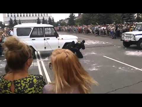 Издание TUT.by приводит комментарий очевидцев: «Я стояла у ограждения примерно в полутора метрах... При демонстрации действий ОМОНа в ЧС газель с омоновцами въехала в ленту ограждения и на тротуар. Зрители вышли за ограждение, чтобы лучше видеть, но машина действительно проскочила 40 сантиметровый тротуарчик из плитки и примерно полметра-метр газона. Сбили девушку около 20 примерно лет, точно не ребенка. Выскочивший водитель и омоновцы с минуту ничего не понимали, потом на них набросился молодой человек с криками, должно быть парень пострадавшей. На ушибы вроде больше никто не жаловался, через минут 5 – 7 приехала скорая и девушку забрали. Поразило то, что люди, отхлынув на несколько секунд, стали с жадностью пропихиваться к девушке, толкаясь с криками «Дайте посмотреть», в том числе и молодые мамашки с маленькими детьми на руках. Хорошо, что омоновцы оградили цепью пострадавшую, а то было гадко – казалось, что ее из любопытства затопчут».