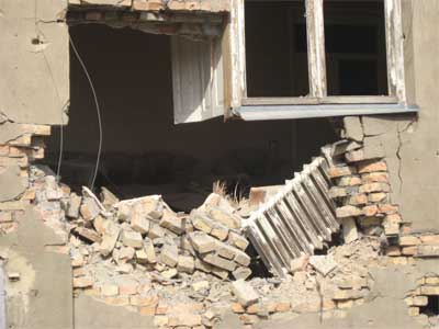 По словам Гартунга, весь город находится в руинах, среди цветущих садов стоят развалины домов, разрушенных до подвалов. Спастись в них никому явно не удалось. Причем окраины, не оказавшие сопротивления при артобстреле, уничтожены полностью. В центре Цхинвала, оказавшем сопротивление, есть несколько уцелевших зданий. Причем военные объекты сохранились (на здании УВД города только следы от пуль), а вот гражданская инфраструктура уничтожена. В Цхинвале нет ни одной целой школы, разрушен университет, водопровод. По мнению Валерия Гартунга, «фактическая задача, стоявшая перед грузинскими военными, заключалась в том, чтобы нанести максимальный урон городу, чтобы люди не могли туда вернуться».
