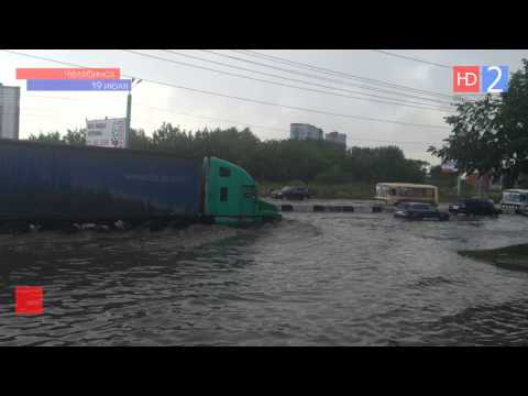 В Челябинске прошел сильный ливень. В некоторых районах городские магистрали превратились в бурные потоки.