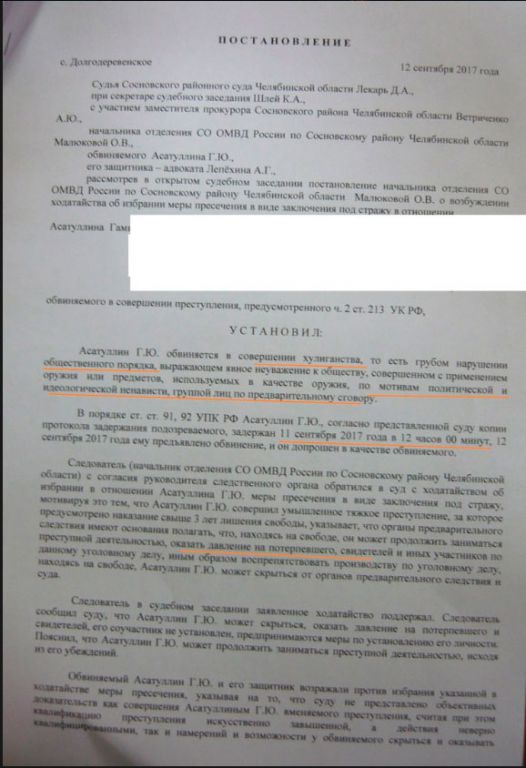 Однако в постановлении суда говорится, что, согласно копии протокола задержания, общественник был задержан 11 сентября в 12 дня.