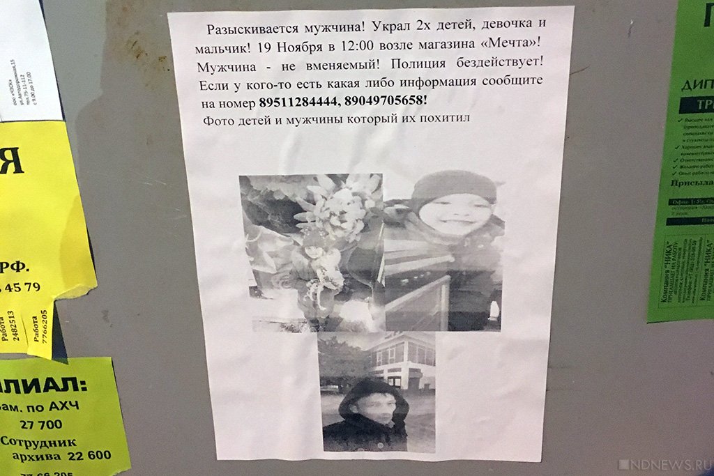 Как передает корреспондент РИА «Новый День», инцидент произошел около полудня 19 ноября в районе магазина «Мечта». Мать пропавших детей заявила, что похититель невменяем, а полиция бездействует.