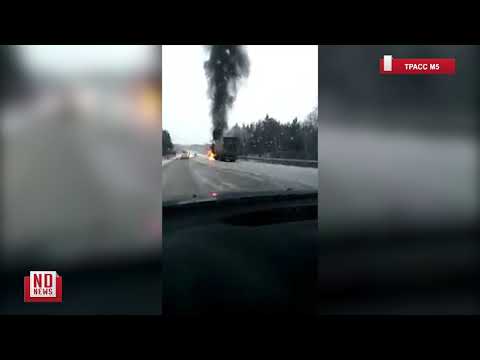 На трассе М5 в Челябинской области на ходу вспыхнул грузовик.