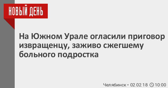 Как уже сообщал «Новый День», зверское преступление произошло в апреле 2017 года в Карабаше. 27-летний местный житель встретил на улице незнакомого 14-летнего мальчика, страдающего психическим заболеванием. Под предлогом распития спиртного мужчина пригласил ребенка в свой дом и там над ним надругался.