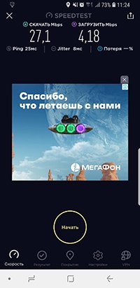 В городе в сети LTE Advanced смартфон показывает максимальную скорость из теоретически возможных (2х2 MU-MIMO) – 352 Мбит/с. На протяжении всей поездки в горы и на озера Galaxy S9+ также уверенно принимал сигнал мобильного оператора. Даже в сельской местности, недалеко от Кыштыма, замеры скорости в сети LTE «МегаФона» показывали достойный результат – 27 Мбит/с.