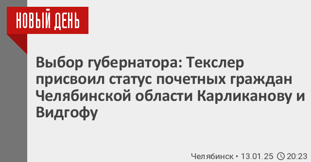 Как передает корреспондент РИА «Новый День», этот статус губернатор Челябинской области Алексей Текслер присвоил известным политикам и бизнесменам – президенту АО «Торговый дом БОВИД» Борису Видгофу и заместителю председателя законодательного собрания региона Юрию Карликанову. Соответствующие постановления размещены сегодня, 13 января, на портале официальных правовых актов.