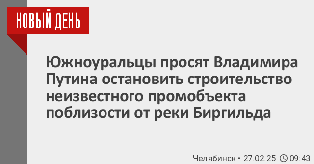 Как передает корреспондент РИА «Новый День», в документе активисты выражают обеспокоенность «тревожной ситуацией», сложившейся вокруг их территории. «Речь идет о начале строительства промышленного объекта в непосредственной близости от реки Биргильда, которая является не только природной достопримечательностью, но и основой жизни нашего села», – говорится в обращении.