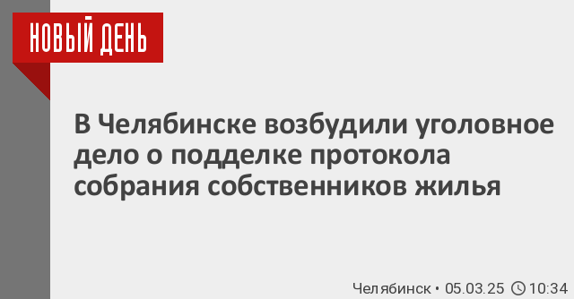 Полиция вынесла постановление по обращению 42 челябинцев, обнаруживших в протоколе собрания собственников жилья о вопросу выбора управляющей организации свои подписи, которые, как настаивают жильцы, они не ставили. «В период до 28.03.24 г. неустановленное лицо в неустановленном месте изготовило с целью сбыта и сбыло протокол №01/101/24 очередного общего собрания собственников помещений в многоквартирном доме от 28.03.2024 года об избрании в качестве управляющей многоквартирным домом организации ООО «ДЕЗ Калининского района», – цитирует «ЕАН. Челябинск» постановление отдела полиции «Калининский» УМВД по Челябинску.