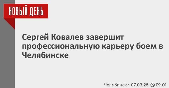 Как сообщили РИА «Новый День» в пресс-службе министерства по физической культуре и спорту Челябинской области, 19 апреля во дворце спорта «Юность» бывший чемпион WBA, WBO и IBF в полутяжелом весе россиянин Сергей Ковалев в рамках турнира «Ночь чемпионов IBA» проведет заключительный поединок в своей профессиональной карьере.