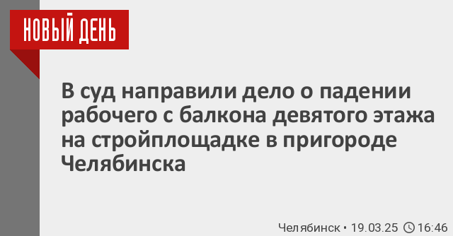 В суд направили дело о падении рабочего с балкона девятого этажа на стройплощадке в пригороде Челябинска