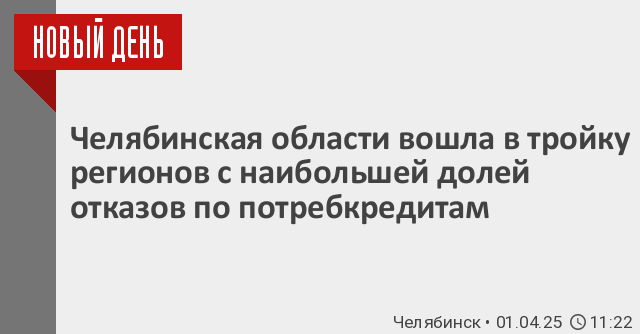 Челябинская области вошла в тройку регионов с наибольшей долей отказов по заявкам на потребительские кредиты.