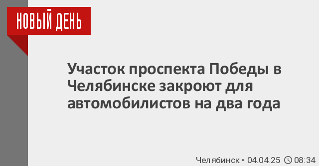 Как сообщили РИА «Новый День» в пресс-службе министерства дорожного хозяйства и транспорта Челябинской области, полное ограничение движения автомобильного транспорта по участку проспекта Победы вводится с 12 апреля.