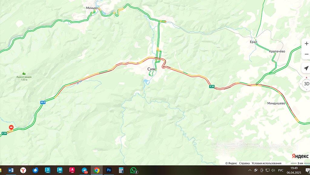 К моменту публикации пробки чуть сократились – примерно до 35 км. Например, в сторону Юрюзани затор начинается после Мясникова и тянется почти до Шарлаша.