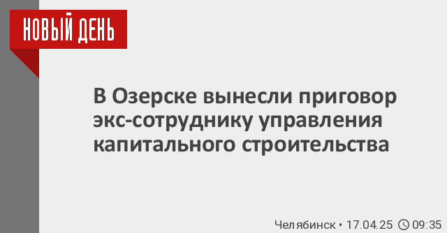 Как сообщили РИА «Новый День» в пресс-службе следственного управления СКР по Челябинской области, бывший ведущий инженер отдела капитального строительства муниципального казенного учреждения «Управление капитального строительства Озерского городского округа» признан виновным в получении взятки в крупном размере.