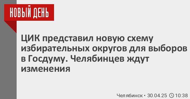 Впрочем, Челябинская область сохранит число своих представителей в Госдуме. В регионе осталось 5 избирательных округов. Однако некоторые из территорий области поменяют свою «прописку». Так, Курчатовский район областного центра, ранее входивший в Челябинский округ, теперь относится входит в Металлургическому. Покинул Челябинский округ и Троицк, перейдя в Магнитогорский избирательных округ.