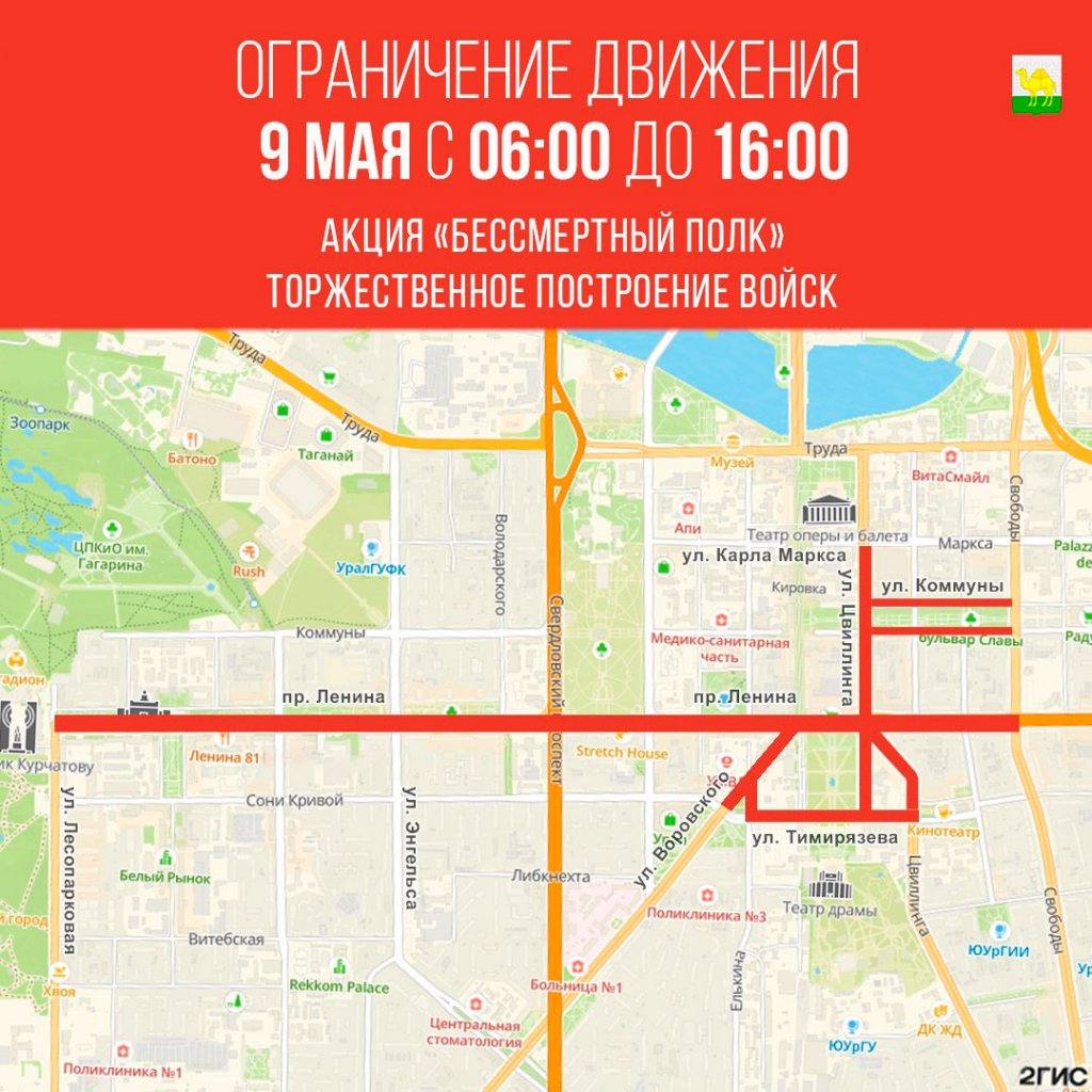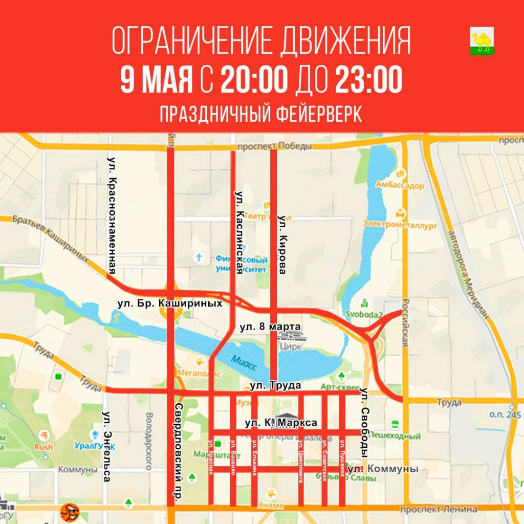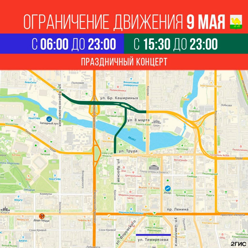 9 мая желающим попасть в центр Челябинска лучше отказаться от автомобилей: в связи с праздничными мероприятиями будет движение транспорта будет полностью закрыто.