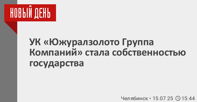 ООО «Управляющая компания «Южуралзолото Группа Компаний», управляющая ПАО «Южуралзолото Группа Компаний», стала собственностью государства. Соответствующие изменения уже внесены в Единый государственный реестр юридических лиц.