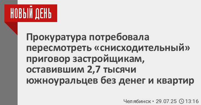 Прокуратура Челябинска обжаловала судебные решения по уголовным делам о хищении денежных средств участников долевого строительства.