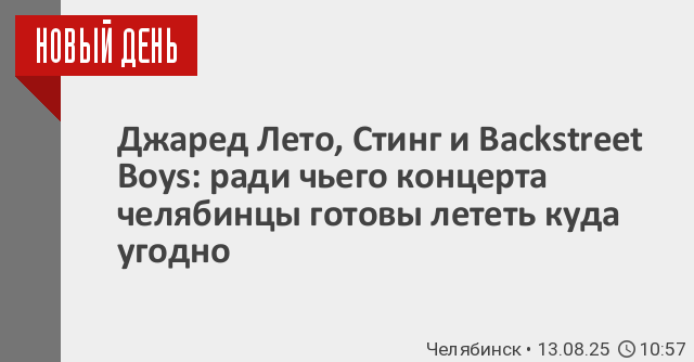 Южноуральцы все чаще хотят совместить путешествие с посещением концертов мировых звезд. В 2025 году жители Челябинской области активнее всего искали билеты на выступления Джареда Лето, OneRepublic, Стинга, а в июле к этому списку прибавилась группа Backstreet Boys. Попасть на их шоу стремились в Казахстан, Турцию, Грузию и ОАЭ – страны с безвизовым въездом или упрощенным получением визы. Именно эти направления стали хитами продаж в дни концертов. Такие данные получили аналитики «МегаФона» и сервиса «Купибилет» в совместном исследовании.