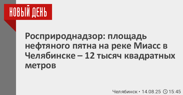 «В Челябинске на реке Миасс у Ленинградского моста обнаружено нефтяное пятно площадью более 12 тысяч квадратных метров. Росприроднадзор начал проверку», – сообщила руководитель Росприроднадзора Светлана Радионова в своем телеграм-канале.