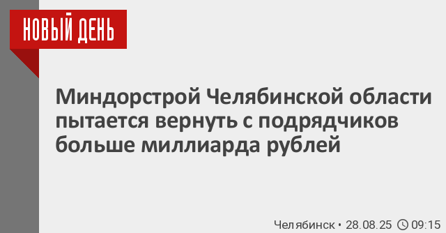Как передает корреспондент РИА «Новый День», министерство дорожного хозяйства и транспорта Челябинской области направило в арбитражный суд региона иски к трем подрядным организациям на общую сумму свыше миллиарда рублей. Информация об этом опубликована в картотеке арбитражных дел.