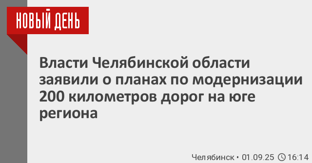 Как сообщили РИА «Новый День» в пресс-службе губернатора Челябинской области, программа рассчитана на 4 года (с 2025 по 2028 год), за это время планируется модернизировать около 200 километров дорог.