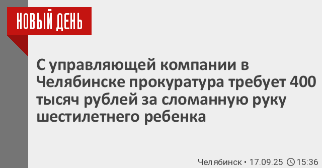 После того, как шестилетний мальчик сломал руку, упав с каната, коммунальщикам Челябинска выставили счет на 400 тысяч рублей.