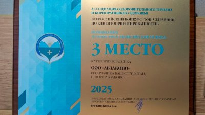 В этом году в жюри были представлены 123 проекта из разных регионов России. Ведущие отраслевые эксперты определили по пять лучших здравниц в каждой из пяти номинаций. Курорт «Абзаково» получил «бронзу» в категории «Лучшее пространство для отдыха». Итоги конкурса были подведены в Москве в рамках всероссийского форума «Инвестиции в развитие здоровой страны. Цифры. Факты. Возможности».