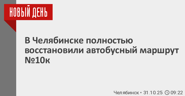 Как сообщили РИА «Новый День» в пресс-службе ОГКУ «Организатор перевозок Челябинской области», с 31 октября перевозчик восстановил обслуживание маршрута №10к «ЧМК – ТРК «Родник» в полном объеме.