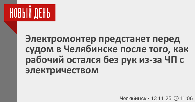 В Челябинске в суд направлено уголовное дело по обвинению электромонтера в нарушении правил безопасности, повлекшем травмирование рабочего.
