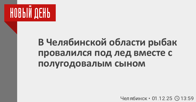 Как передает корреспондент РИА «Новый День», инцидент произошел в минувшую субботу, 29 ноября, днем на водоеме вблизи села Катаево. Об этом сообщается на странице отдела МВД по Южноуральску и Увельскому району в социальных сетях.