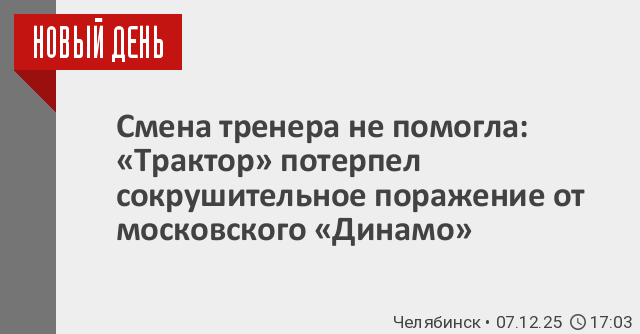 Смена тренера не помогла: «Трактор» потерпел сокрушительное поражение от московского «Динамо»