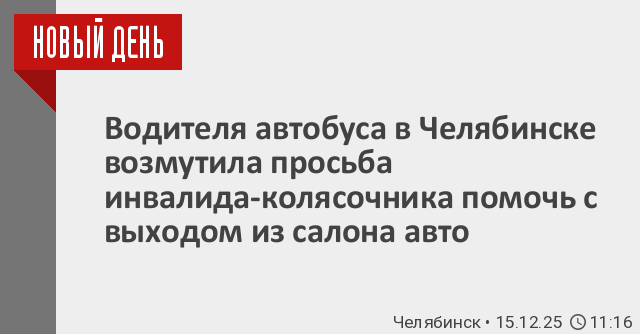 Как сообщили РИА «Новый День» в пресс-службе следственного управления СКР по Челябинской области, во время высадки из салона автобуса инвалид-колясочник упал с откидного пандуса, однако водитель помощи ему не оказал и стал проявлять агрессию в отношении пострадавшего.