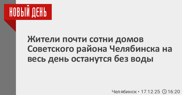 В Советском районе Челябинска на 13 часов отключат водоснабжение.