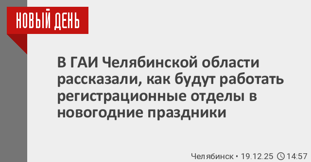Зарегистрировать транспортные средства и получить права на управление ими в регистрационных подразделениях Госавтоинспекции Челябинской области можно будет 3, 9 и 10 января 2026 года.