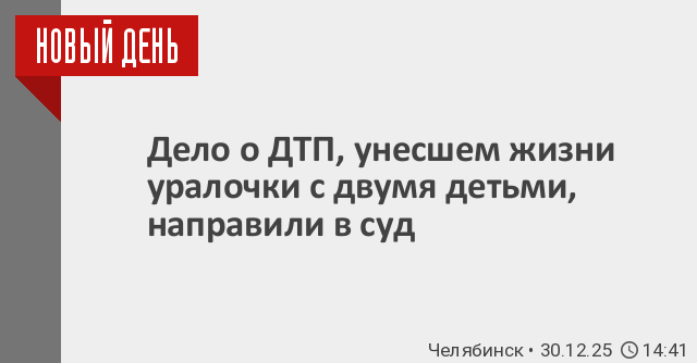 Как сообщили РИА «Новый День» в пресс-службе прокуратуры Челябинской области, надзорное ведомство Красноармейского района утвердило обвинительное заключение по уголовному делу в отношении 51-летней местной жительницы, обвиняемой в нарушении правил дорожного движения и эксплуатации транспортных средств, повлекшем по неосторожности смерть двух или более лиц.