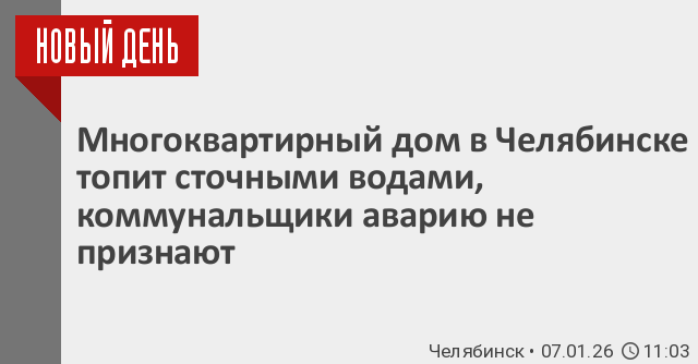 По словам жильцов, подвал начало заливать 26 декабря, тогда же появилось и неприятное амбре, в управляющую компанию они обратились 30 декабря. На следующий день пришел сантехник, но течь устранить не удалось, а запах ста еще сильнее. Горожане обратились в аварийно-диспетчерскую службу. «Аварии нет, так как затоплен подвал, а не колодцы; заявка будет передана в ЖЭУ только после 12 января», – цитирует ответ коммунальщиков телеграм-канал «Новости Челябинска».