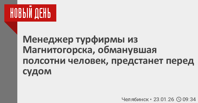 В Магнитогорске перед судом предстанет менеджер одной из туристических фирм, обвиняемая в мошенничестве на сумму более 10 миллионов рублей.