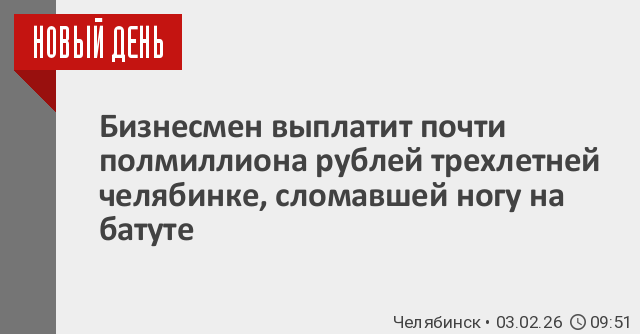 В Челябинске предприниматель выплатит 450 тысяч рублей девочке, пострадавшей на батуте.