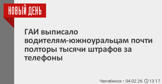 Как передает корреспондент РИА «Новый День», за первый месяц 2026 года водители Челябинской области получили 1 тысячу 300 протоколов за использование сотового телефона за рулем. Об этом сообщил начальник ЦАФАП ГАИ региона Сергей Пурусов.