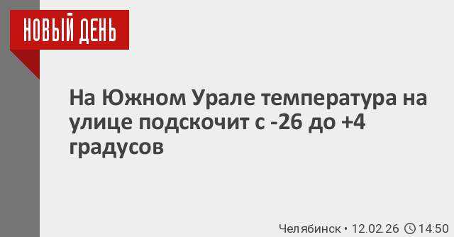 Как сообщили РИА «Новый День» в пресс-службе Челябинского гидрометцентра, резкое потепление придет в регион уже в пятницу.