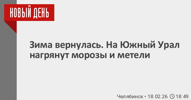 В Челябинске ближайшей ночью температура снизится к 22-24 градусам ниже нуля, днем потеплеет до -9, -11 градусов. В пятницу еще чуть похолодает – до 24-26 градусов ниже нуля ночью и -10, -12 днем. К тому же днем 20 февраля ожидается слабый снег. В ночь на субботу, 21, февраля, он усилится до умеренного, днем его интенсивность снизится. Температура воздуха ночью будет -13, -15 градусов, днем воздух прогреется до 7-9 градусов ниже нуля.