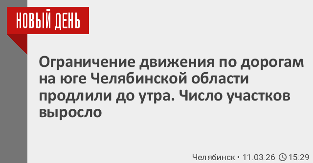 Как сообщили РИА «Новый День» в пресс-службе министерства дорожного хозяйства и транспорта Челябинской области, в связи с продолжающимися неблагоприятными погодными условиями (снег, метель, снежные заносы, сильные порывы ветра, ограниченная видимость) продлено временное ограничение движения автобусов и маршрутных такси, а также грузовых автомобилей, перевозящих крупногабаритные и тяжеловесные грузы, до 8:00 четверга, 12 марта, на следующих дорогах: