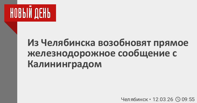 Как сообщили РИА «Новый День» в пресс-службе Российских железных дорог, прямое сообщение между Челябинском и Калининградом возобновится с 1 июня текущего года.