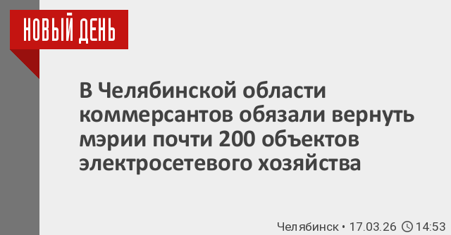 Как сообщили РИА «Новый День» в пресс-службе прокуратуры Челябинской области, арбитражный суд Челябинской области признал недействительными договоры купли – продажи 177 объектов электросетевого хозяйства, заключенные между комитетом по управлению имуществом администрации Кыштыма и ООО «Челябинская электросетевая компания», ООО «Электро ТК».