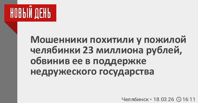 Так, у 80-летней пенсионерки из Челябинска мошенники похитили 23 миллиона рублей. А 86-летняя жительница Екатеринбурга лишилась 4,4 миллиона рублей.