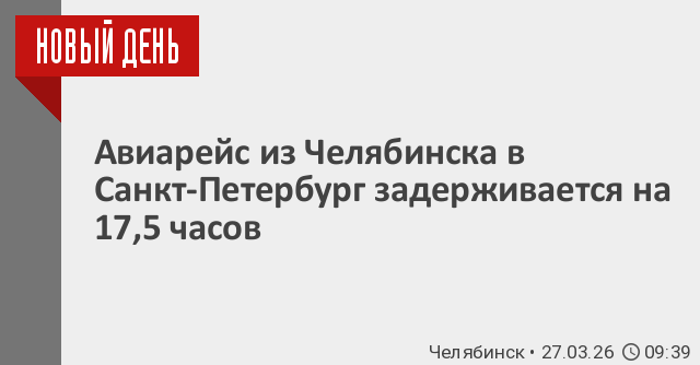 Задерживается и вылет судов из Челябинска в Санкт-Петербург: авиарейс, отбытие которого планировалось на 05:40, перенесен на 13:30 (по данным онлайн-табло челябинского аэропорта, в настоящее время проходит регистрация на него), второй самолет вылет которого планировался на 08:00 пятницы, 27 марта, должен покинуть столицу Южного Урала в 01:30 субботы, 28 марта.