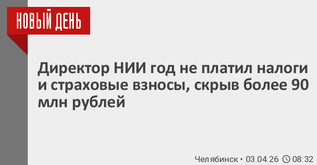 В Челябинской области директор НИИ год скрывал от налоговой деньги на обязательные взносы и отчисления.