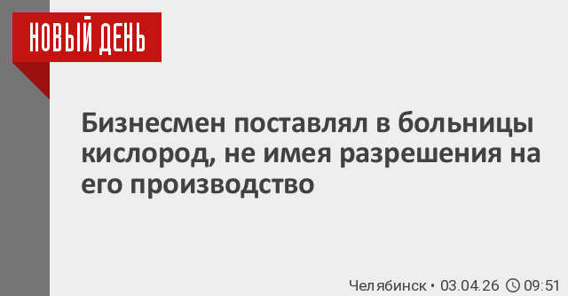 Как сообщает пресс-служба СКР по Челябинской области, директор коммерческой организации заключил 24 контракта с медицинскими учреждениями Челябинской области на поставку газообразного и жидкого медицинского кислорода. В период с 21 июня 2024 года по 3 октября 2024 года, зная об отсутствии у организации необходимой лицензии на производство медицинского кислорода, обвиняемый изготовил его на сумму более 11,9 млн рублей. Этот кислород был поставлен в медицинские учреждения региона и использовался для оказания помощи пациентам.
