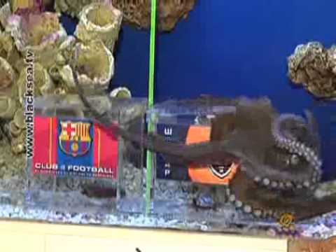 Пророчество алуштинского осьминога проводилось под прицелом телекамер по примеру его германского собрата Пауля, который предсказывал результаты матчей чемпионата мира по футболу. Накануне матча «Шахтера» и «Барселоны» Павлик, которого около месяца назад привезли в Крым из Италии, выбрал кормушку с мидиями с логотипом именно испанской команды.