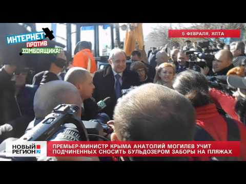 В Ялте устроили показательную акцию по сносу незаконных ворот на пляже. За рулем трактора премьер-министр Крыма Анатолий Могилев собственноручно сломал ограду, дав старт кампании по освобождению курортов от ограждений на набережных и пляжах.